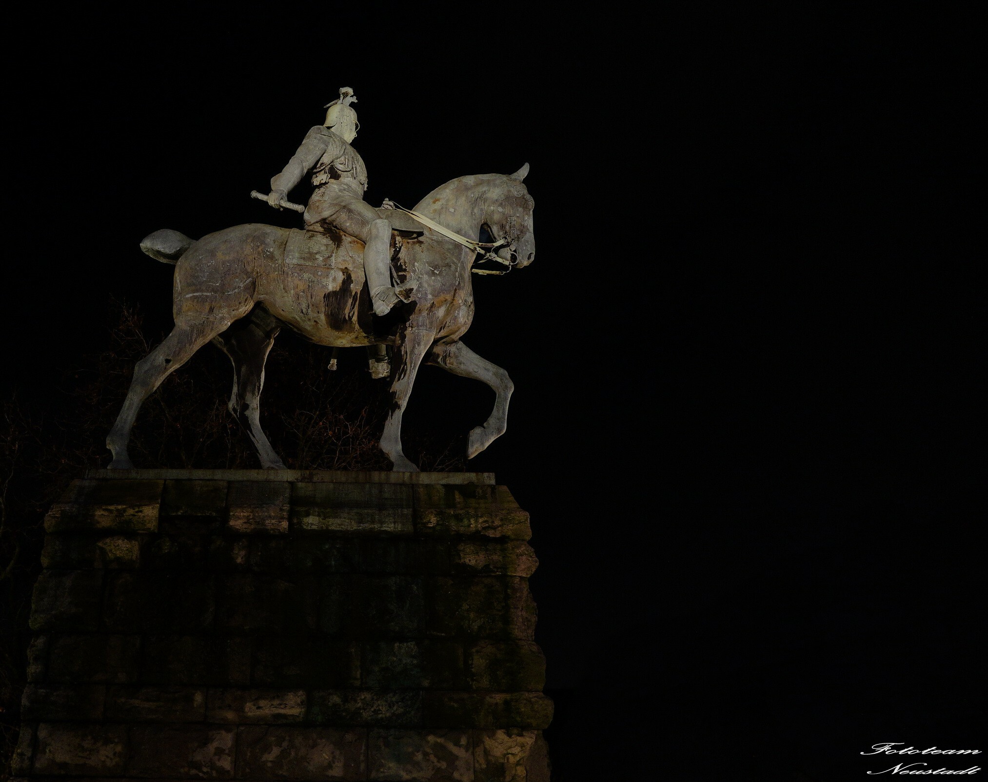 Köln bei Nacht - Reiterstandbild von Wilhelm II. an der Hohenzollernbrücke